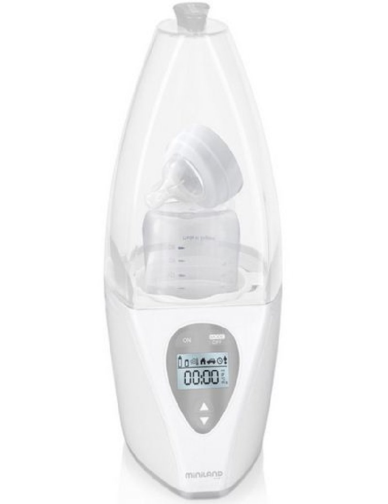 Подогреватель-стерилизатор Miniland Warmy Advanced от Mothercare применяется для разогревания баночек и бутылочек с детским питанием, а также для их стерилизации. Если родители решат отправиться в небольшое путешествие на машине с ребенком, лучшим решением станет данная модель — ее можно брать в автомобиль, ведь она имеет возможность питания от «прикуривателя». Предусмотрена функция определения времени нагрева той или иной пищи, в зависимости от ее типа. Важным плюсом в конструкции подогревателя является система держателей, позволяющая использовать бутылочки с разной емкостью.