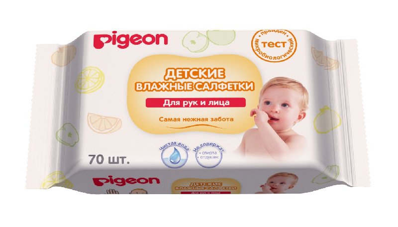 Купить Влажные салфетки для рук и рта PIGEON детские — 70 шт, арт. 996877789 онлайн с доставкой курьером по Москве, Санкт-Петербурге и России.