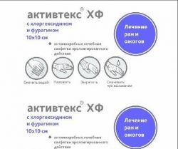 Активтекс ХФ (действующие вещества – хлоргексидин и фурагин). Фурагин и хлоргексидин обладают разными механизмами действия на микробную флору, что увеличивает терапевтический эффект при лечении больных в случае наличия первично инфицированных ран (случайные раны, укусы животных), а также при наличии гнойно-воспалительного процесса.
