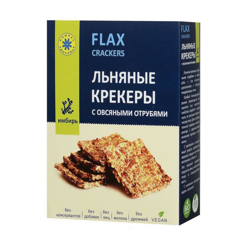 Купить Льняные хрустящие крекеры с овсяными отрубями Имбирь 150 г в интернет-аптеке по низкой цене 188 руб в Москве, СПб с доставкой. Отзывы и инструкция.