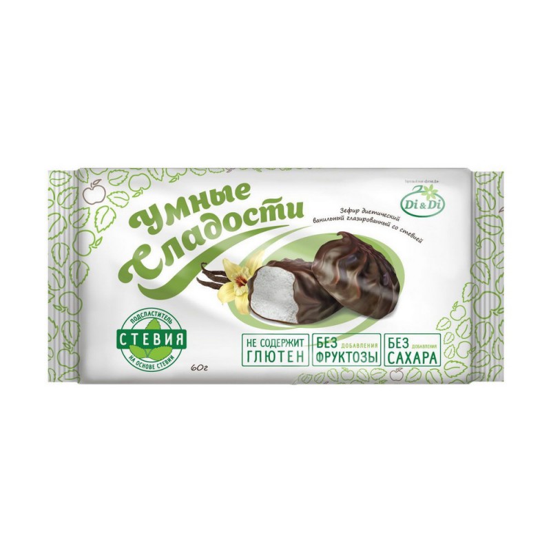 Зефир ванильный Умные Сладости, глазированный, со стевией 60г