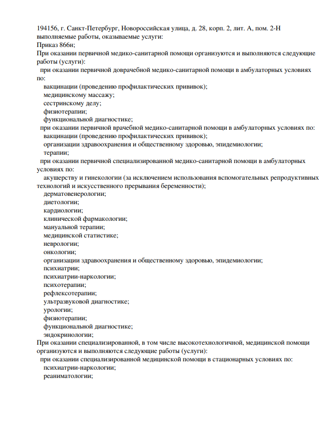 Многопрофильный медицинский центр. Осуществляет консультативный и диагностический прием взрослых и детей. В клинике работают специалисты по направлениям гастроэнтерологии, урологии, гинекологии, кардиологии, неврологии, терапии и т.д. Прием проводится по предварительной записи.
