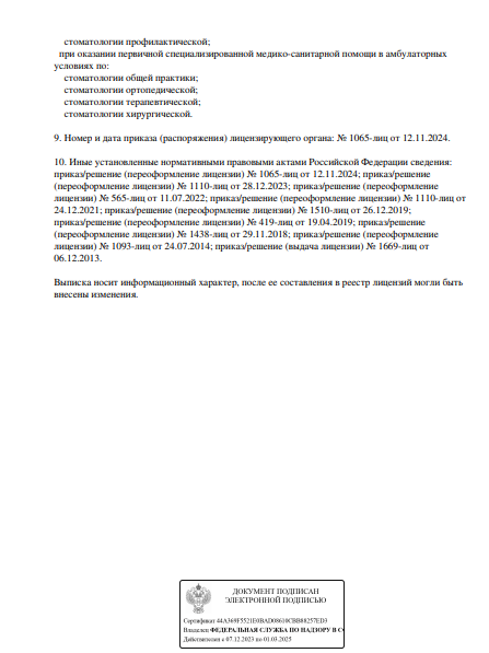 Стоматологическая клиника предоставляет услуги по стоматологии, включая терапию, ортопедию, ортодонтию, хирургию, имплантацию. Прием проводится по предварительной записи.