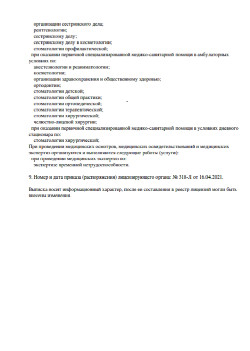 Стоматолог-пародонтолог. Специализируется на диагностике, профилактике и лечении таких заболеваний, как пародонтит, пародонтоз, повышенная чувствительность эмали, зубной камень, гингивит, зубной налёт. Проводит отбеливание зубов, ультразвуковую чистку зубов.