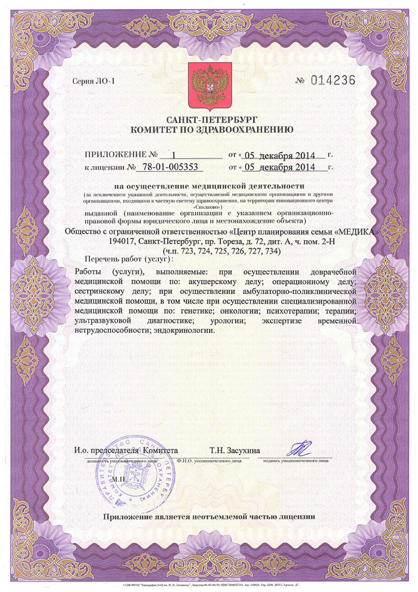 Центр репродукции и планирования семьи Медика. Основные направления работы центра — лечение бесплодия, вспомогательные репродуктивные технологии, акушерство и гинекология, в т.ч. оперативная, урология, андрология, эндокринология. Обследование и лечение проводится на новейшем высокотехнологичном оборудовании.