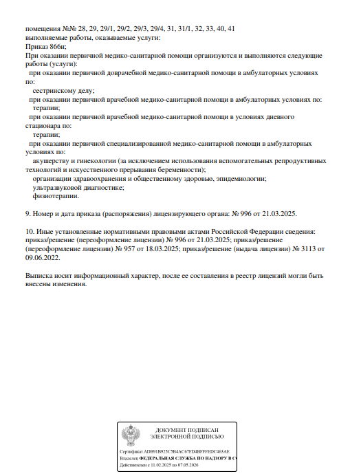 Многопрофильный медицинский центр. Осуществляет консультативный и диагностический прием взрослых и детей. В клинике работают специалисты по направлениям гастроэнтерологии, урологии, гинекологии, кардиологии, неврологии, терапии и т.д. Прием проводится по предварительной записи.