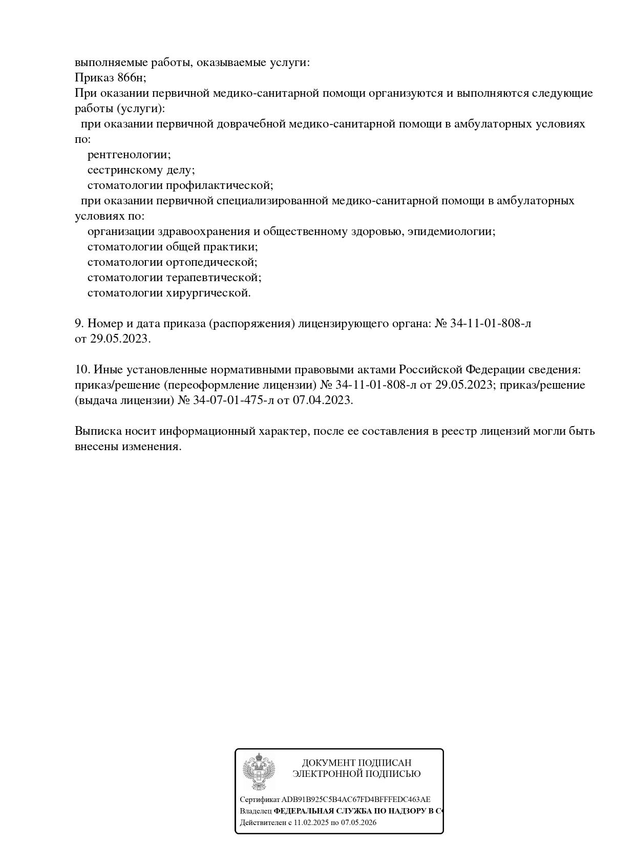 Специализации клиники