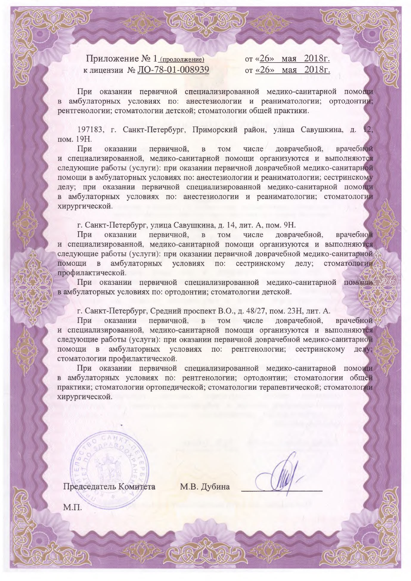 Стоматологическая клиника. В клинике проводят лечение кариеса и его осложнений, пародонтологическое лечение, предоставляют услуги по ортопедии, ортодонтии и отбеливанию, герметизации фиссур, профессиональной гигиене полости рта у взрослых и у детей разного возраста, фторированию всех зубов, проводят все виды хирургических операций под воздействием ксенона.