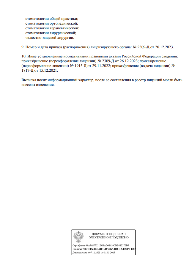 Специализации клиники