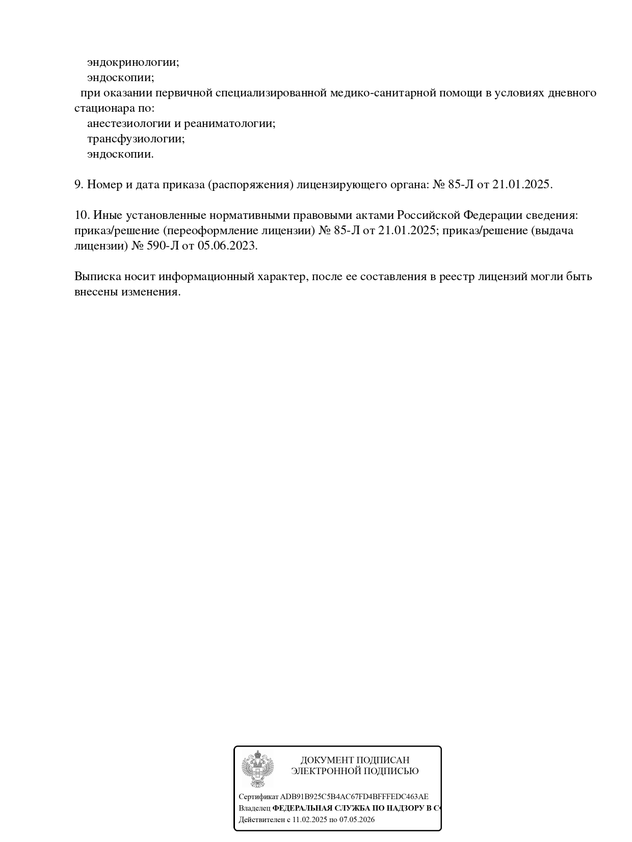 Ключевые направления услуг: гинекология; онкология; эндокринология; дневной стационар; косметология; диагностика; УЗИ; физиотерапия; очищение организма.