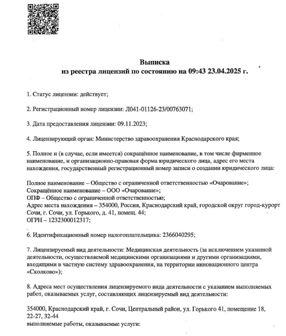 Специализации клиники