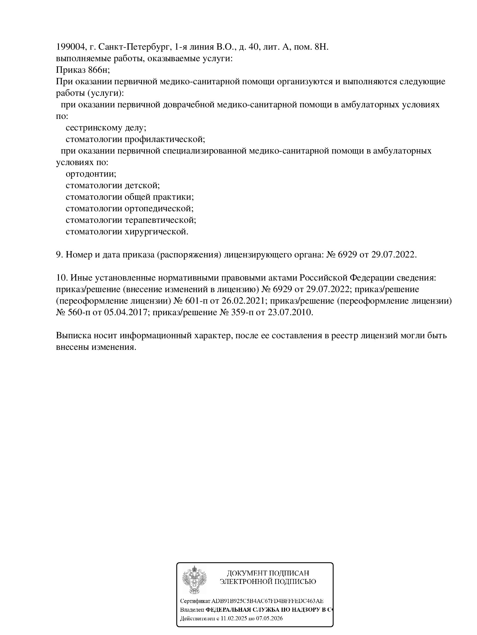 Специализации клиники