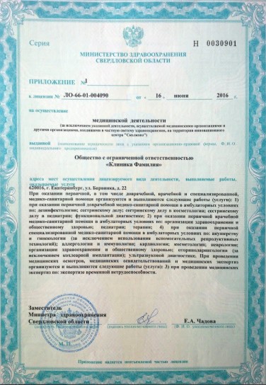 Многопрофильный медицинский центр Клиника Fамилия осуществляет прием взрослых и детей, проводятся консультации, таких специалистов, как: Терапевт, Семейный врач, Врач общей практики, ЛОР, ЛОР-хирург, Отохирург, Сурдолог, Гинеколог, Офтальмолог, Дерматолог, Косметолог, Трихолог, Педиатр, Невролог, Отоневролог, Психиатр, Аллерголог, Гастроэнтеролог, имеется УЗИ диагностика. После консультации, пациентам предлагаются разные виды лечения, в том числе и физиопроцедуры. В медицинском центре бережные и современные методики диагностики, внимательный персонал. А так же любые виды анализов в день обращения. Прием проводится по предварительной записи.