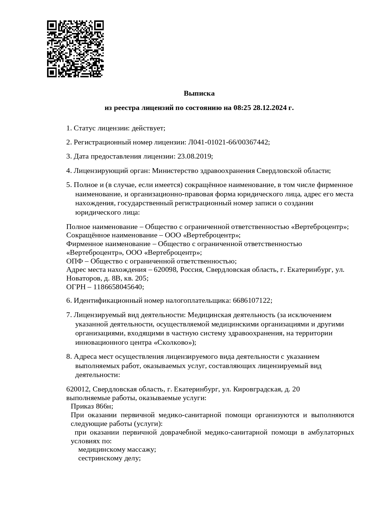 неврологии и мануальной терапии Вертеброцентр, Чкалова 18