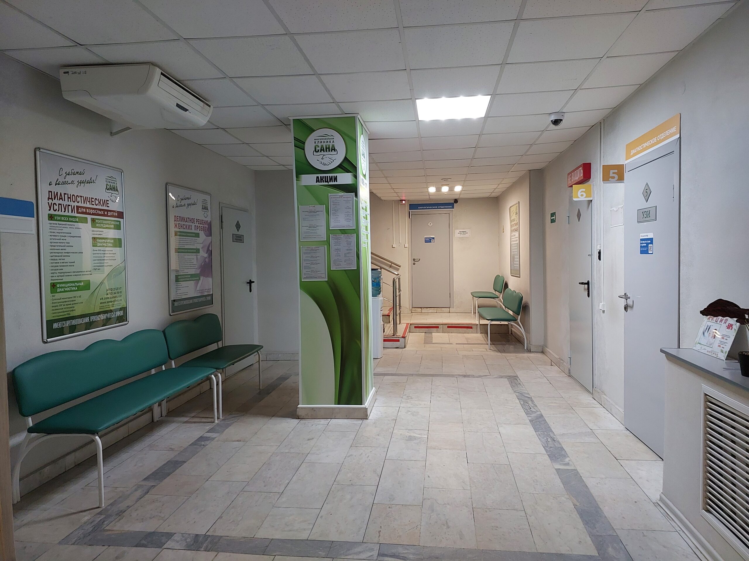 Многопрофильная клиника «Сана» с 2006 года оказывает медицинские услуги для детей и взрослых на платной основе и по полисам добровольного медицинского страхования. Обеспечивает качественную диагностику и лечение в различных областях медицины. В клинике проводятся периодические и предварительные профилактические осмотры для всех видов профессий, диспансеризация государственных и муниципальных служащих, все виды комиссий. Осуществляется выезд врачей и медперсонала на дом. Клиника «Сана» предоставляет услуги более чем по 50 направлениям медицинской помощи, постоянно развивается и внедряет в свою работу уникальные и инновационные способы лечения пациентов. Проводятся современные методы лечения варикоза Лазером, лор-операций лазером, лечение боли в суставах и спине под контролем УЗИ и другие.