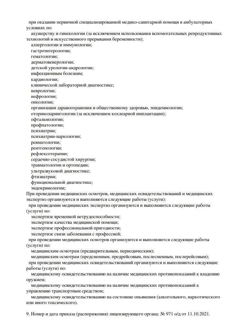 Медицинский центр Союзмед в Кудрово специализируется на профессиональных осмотрах. Приём ведут врачи следующих специальностей: гинекология, эндокринология, неврология и фтизиатрия. В центре Союзмед можно пройти медкомиссию на получение справки для госслужбы, работы с гостайной. Производится оформление справки в лагерь, а также санитарно-курортной карты. Можно пройти медкомиссию для водительского удостоверения, в том числе на управление тракторами, самоходными машинами и маломерными судами. Прием проводится по предварительной записи.
