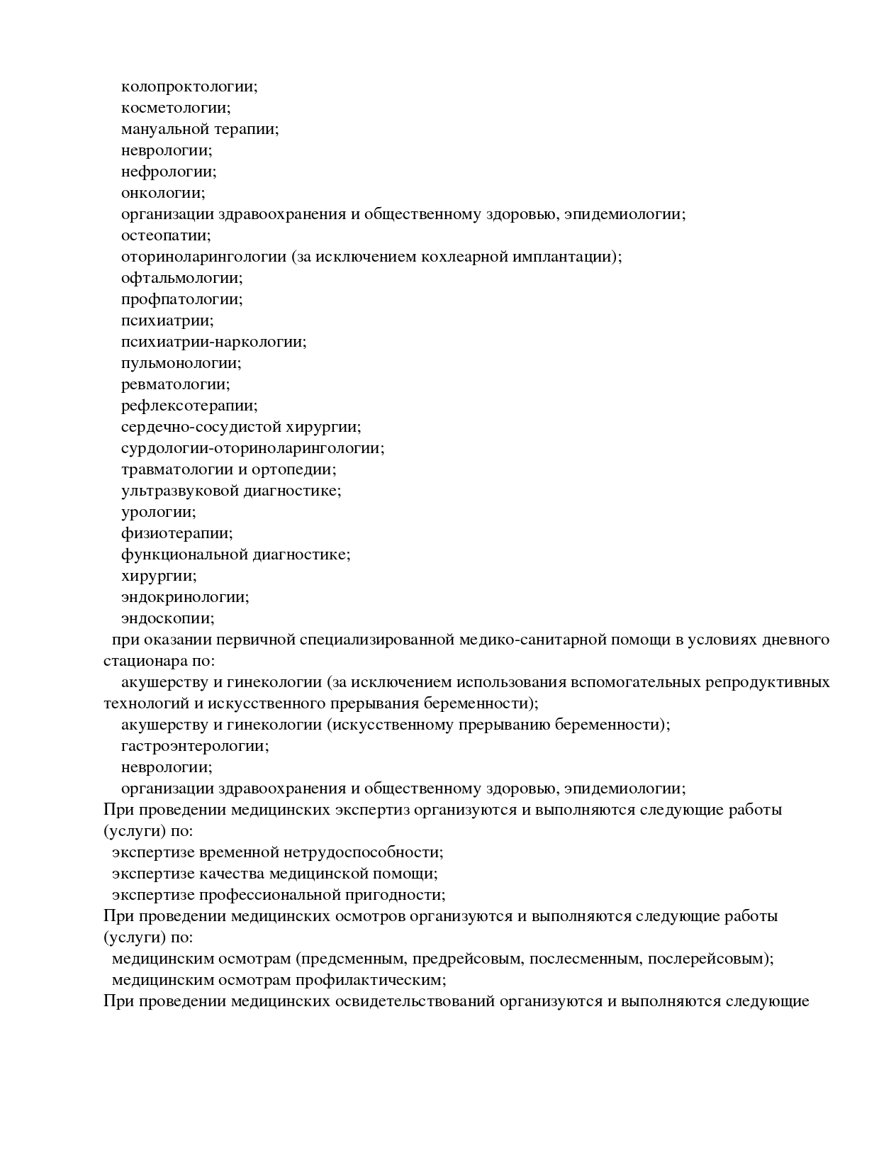 Специализации клиники