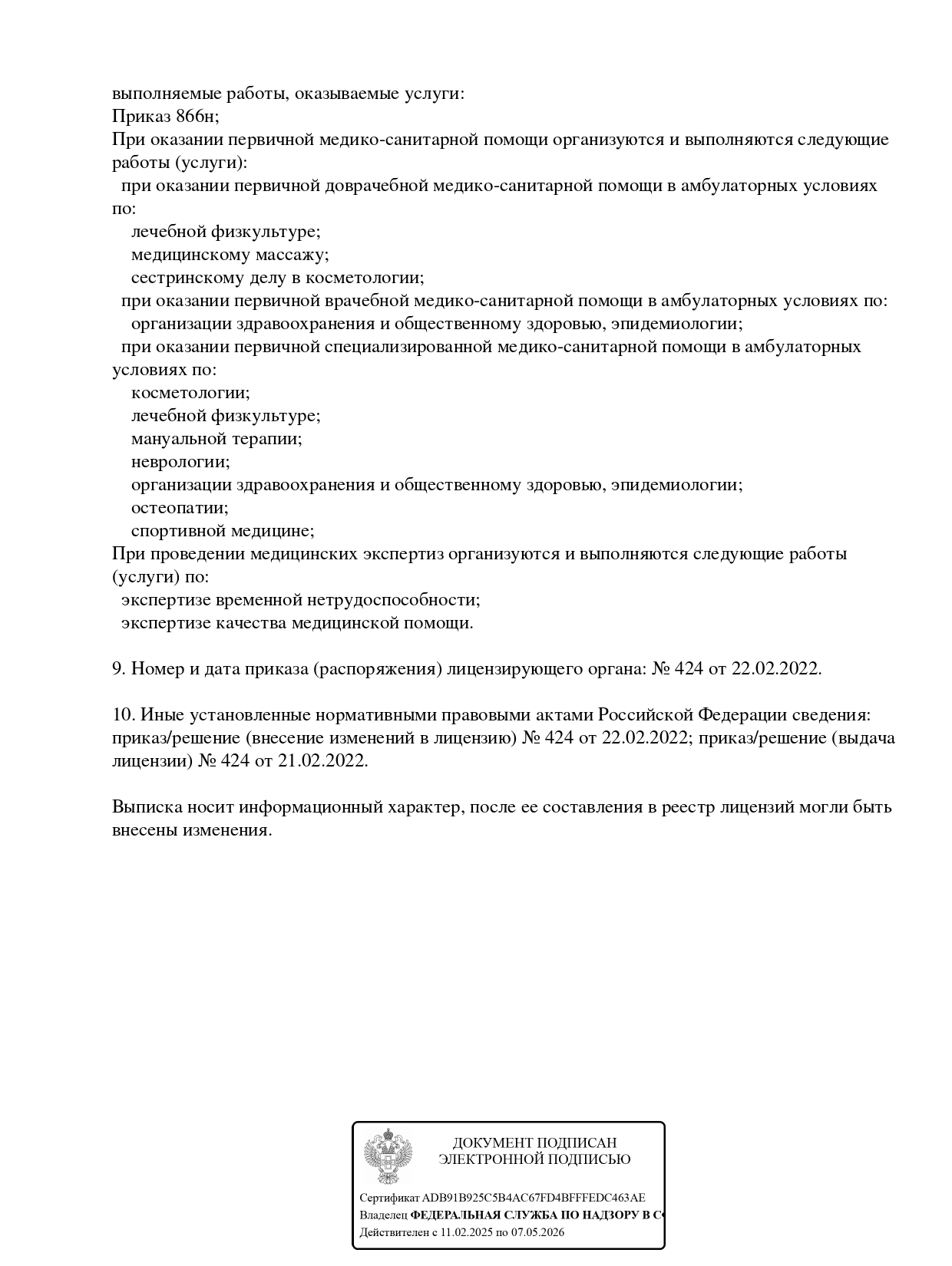 Клиника специализируется на ручных методиках оздоровления: остеопатия, мануальная терапия, кинезиология, реабилитология, спортивная медицина, рефлексотерапия, массаж. А также на клинических специальностях, таких как: неврология, психотерапия, лабораторные анализы и оздоровительные капельницы. Есть косметология, инъекционные процедуры и эстетическая работа с телом и лицом. Специализированные услуги для женщин: акушерско-гинекологический массаж, остеопатия и массаж для беременных, комплексное восстановление после родов, массаж для кормящих, в т.ч. для налаживания лактации. Прием проводится по предварительной записи.