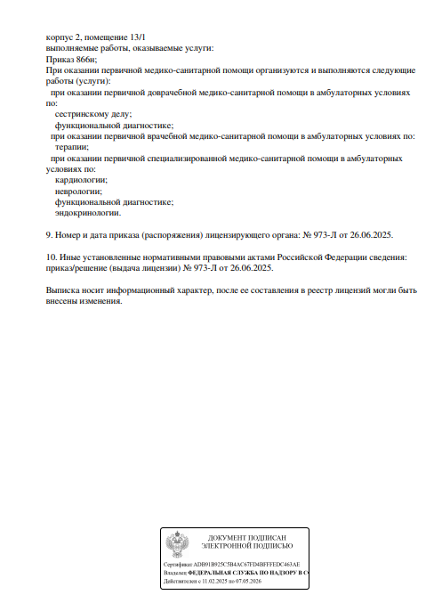 Пациентам доступен вызов на дом врача или младшего медицинского персонала.