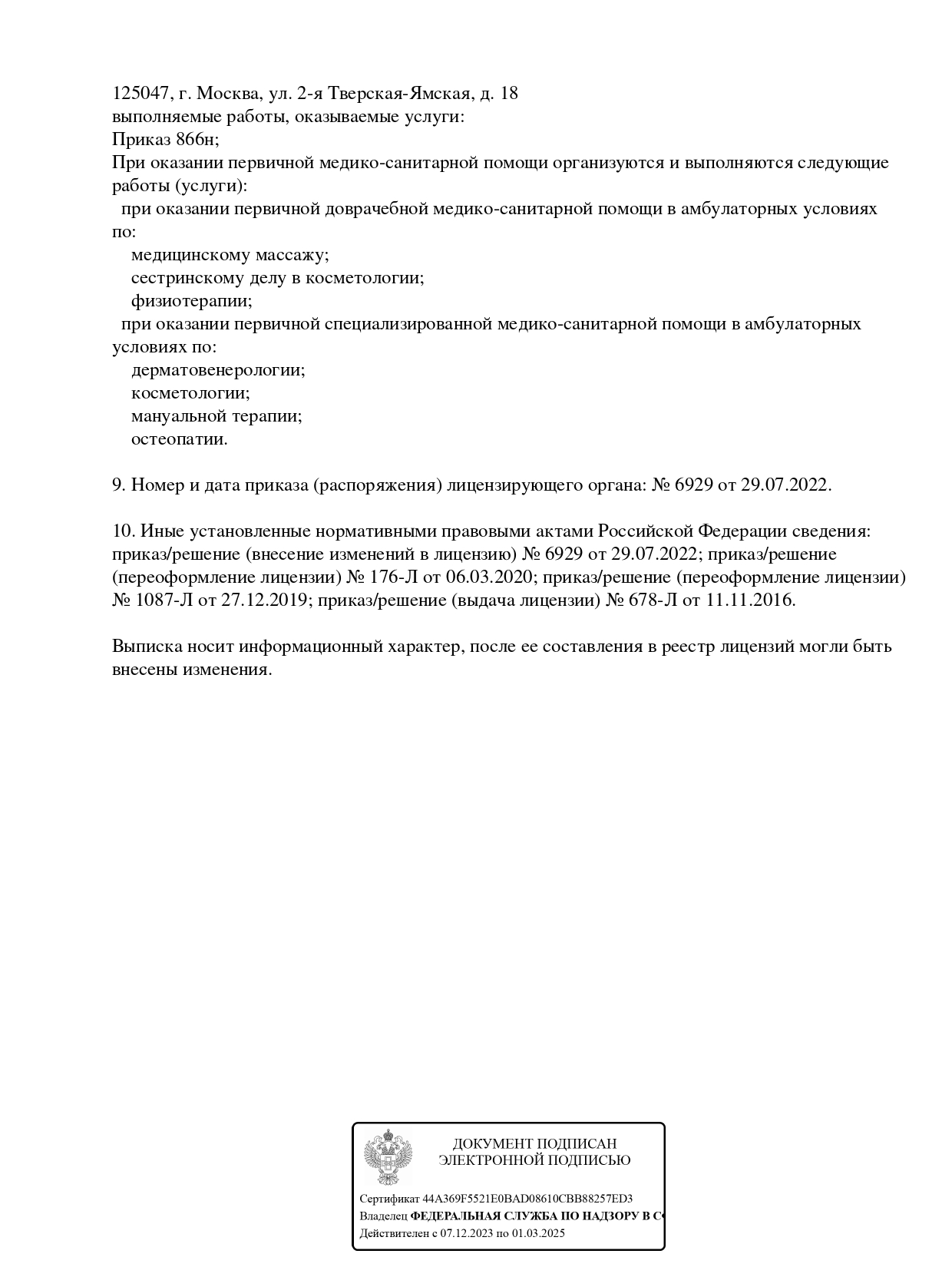 Дерматолог, косметолог, трихолог. Осуществляет лечение таких заболеваний как акне (угри), бородавки, лишаи, пигментные пятна, грибковые и инфекционные заболевания кожи, выпадение волос, поражения ногтевых пластин. Проводит контурную пластику, комплексный эстетический уход за кожей, подбор и назначение профессиональной косметики и др.