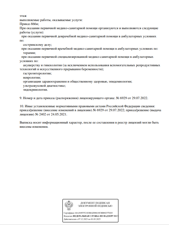 Основные услуги клиники: