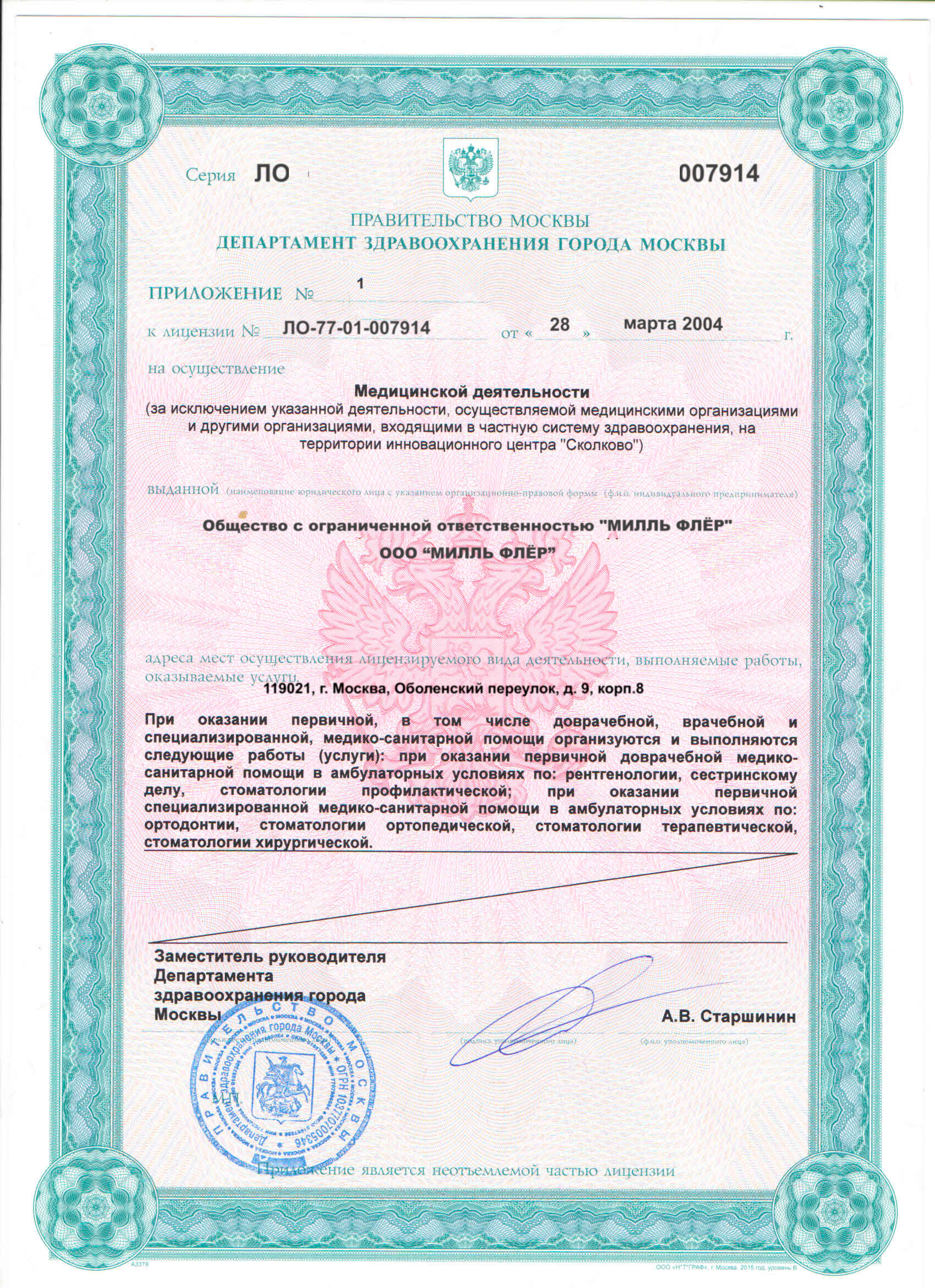 Занимается терапевтической стоматологией (обработка корневых каналов ручными и машинными файлами), эстетической реставрацией зубов, профессиональной гигиеной полости рта, отбеливанием зубов, восстановлением и протезированием зубов (изготовление вкладок, коронок, мостовидных, съемных протезов).