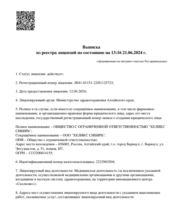 Лабораторная служба Хеликс. В центре можно выполнить медицинские и генетические анализы. Прием ведут врачи по направлениям гинекология, неврология, урология и т.д. В клинике проводят ультразвуковую диагностику. Прием оказывается по предварительной записи.