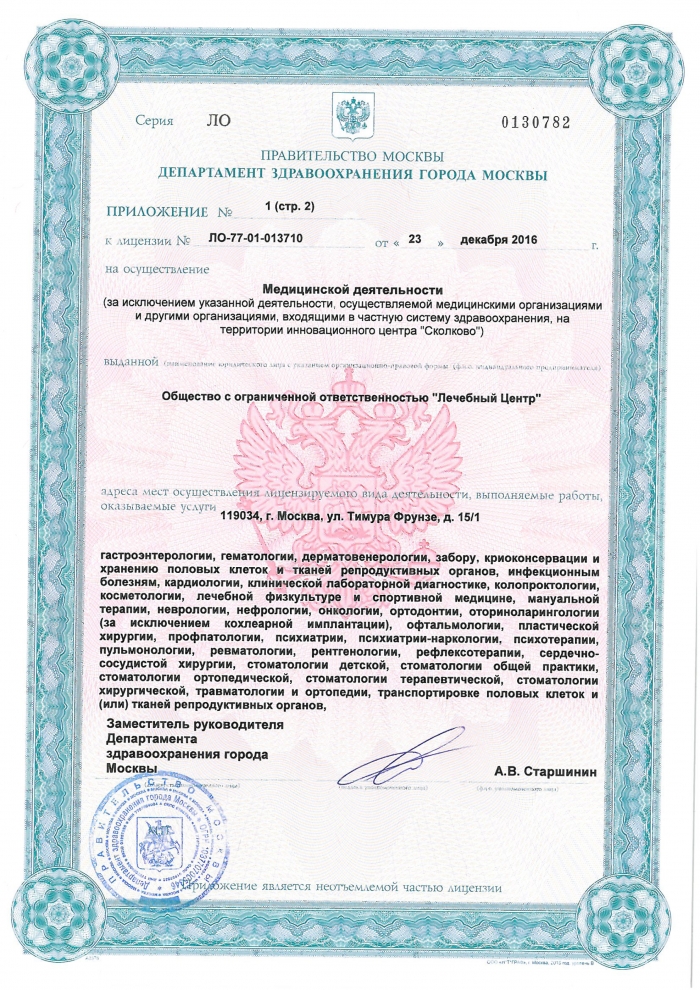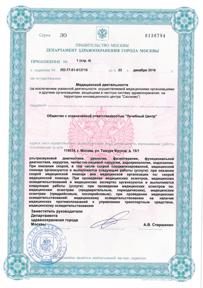 Цены на диагностику в - «Лечебный центр на ул. Тимура Фрунзе»