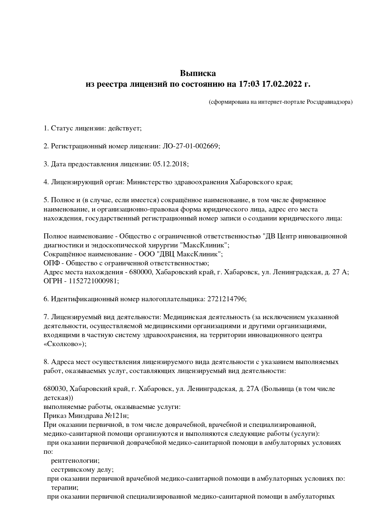 Дальневосточный центр инновационной диагностики и эндоскопической хирургии Максклиник — это современная больница, которая специализируется на проведении операций с применением эндоскопического и лапароскопичекого доступа. В клинику обращаются пациенты, которым необходимо оперативное лечение грыж, желчнокаменной болезни, ЛОР-заболеваний, решение гинекологических и урологических проблем. Одно из популярных направлений – бариатрическая хирургия или хирургия ожирения. Также в центре можно пройти исследования УЗИ и МРТ на современном высокоточном оборудовании.