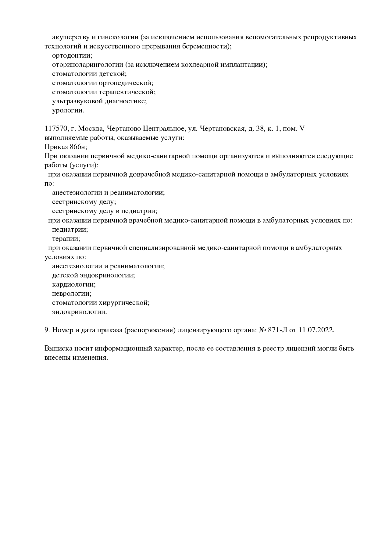 Профильный медицинский центр. Специализируется на выводе из запоя. Осуществляет приём взрослых. Центр расположен в 20 минутах ходьбы от м. Крылатское. В клинике нет госпитализации, не делают анализы, не проводят лечение от наркотической зависимости.