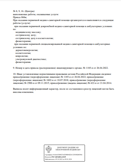 Медицинский цент осуществляет прием взрослых и детей по направлению травматология и ортопедия, осуществляется выезд травматолога-ортопеда на дом. Проводится забор анализов любой сложности, прием взрослых по направлению неврология, нейрохирургия, хирургия. Ведется прием подолога, производятся малые хирургические вмешательства, блокады, удаление новообразований кожи и подкожножировой клетчатки. При необходимости проводится экспертиза временной нетрудоспособности.