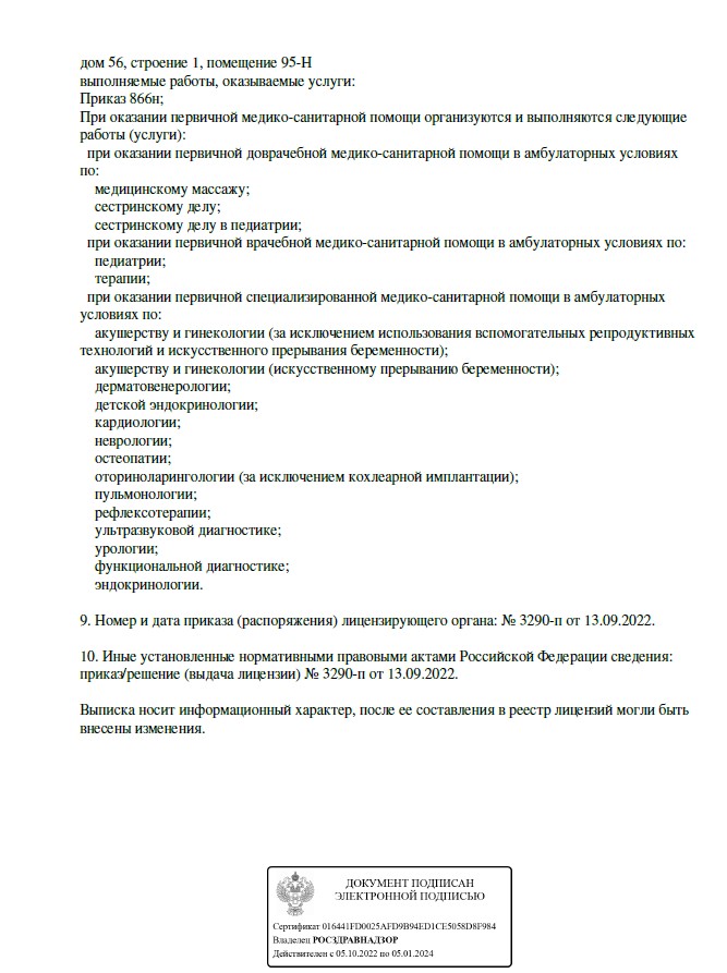 Многопрофильный медицинский центр. Осуществляет консультативный и диагностический прием взрослых и детей. В клинике работают специалисты по направлениям гастроэнтерологии, урологии, гинекологии, кардиологии, неврологии, терапии и т.д. Прием проводится по предварительной записи.