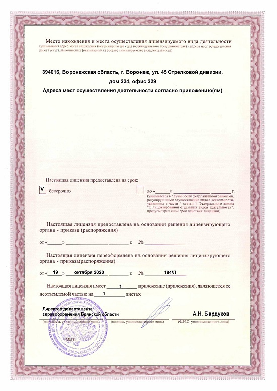 Стоимость приема - 1800 Руб