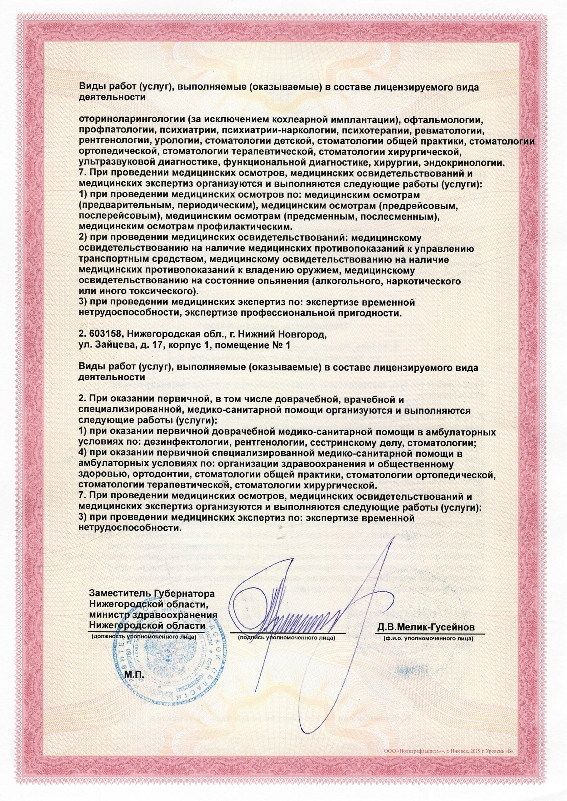 Проводит диагностику, профилактику и лечение заболеваний уха и верхних дыхательных путей, в том числе отита, трахеита, фарингита, глухоты и тугоухости, гайморита, ангины (тонзиллита), ларингита, ринита.