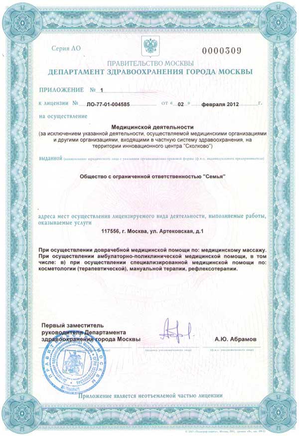 Медицинский Массажный Центр Здоровья и Красоты Семья