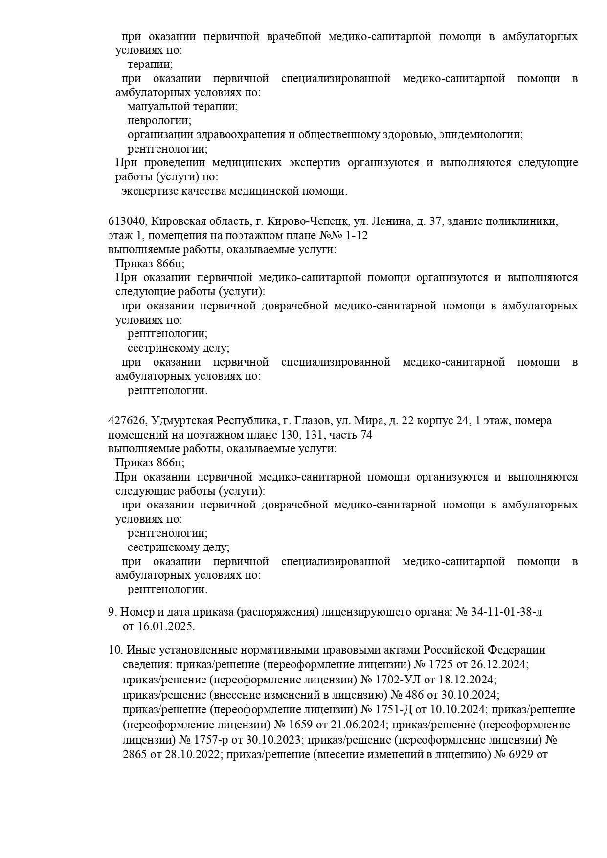 Специализации клиники