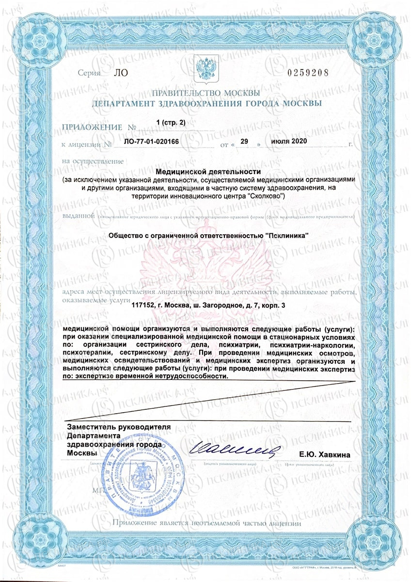 Специализированный медицинский центр, в котором алкозависимые и наркозависимые люди могут избавиться от своей болезни. Особенностью частного наркологического центра является индивидуальный и комплексный подход. Пациенты получают курс физического восстановления, психологической помощи, физиотерапевтические и диагностические методы обследования и лечения. В клинике работают квалифицированные врачи, психологи, психотерапевты, имеющие большой и успешный опыт работы в лечение зависимого поведения.