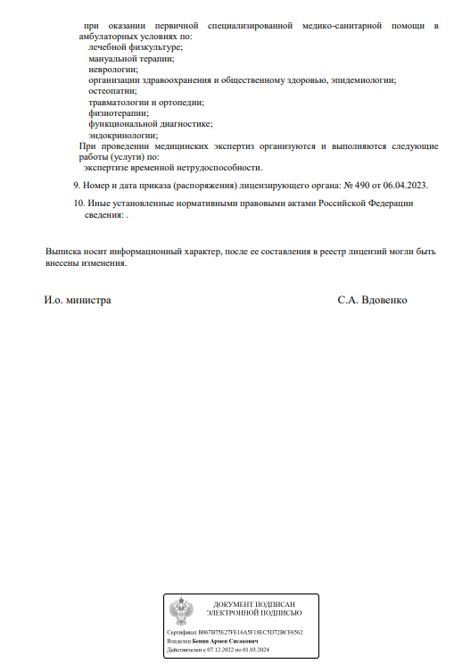 Частная медицинская клиника. Работа ведется по нескольким направлениям: диагностика и прогнозирование, лечение, реабилитация, профилактика. Специалистами созданы комплексные программы лечения по авторской методике гл. Врача клиники - Андреева Валерия Евгеньевича.