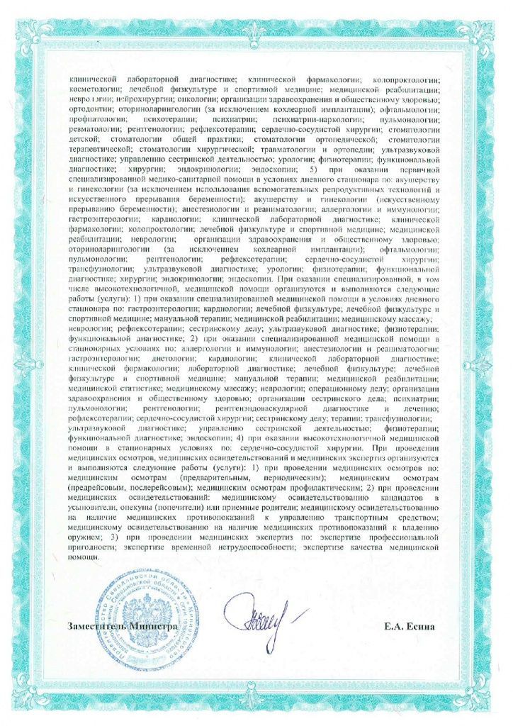 Многопрофильный медицинский центр. Осуществляемый консультативный и диагностический прием для взрослых и детей. Работает по международным стандартам и имеет научный подход к диагностике и лечению заболеваний. В клинике работают специалисты по направлениям гинекология, эндокринология, терапия, кардиология и т.д. Прием специалистов проводится по предварительной записи.