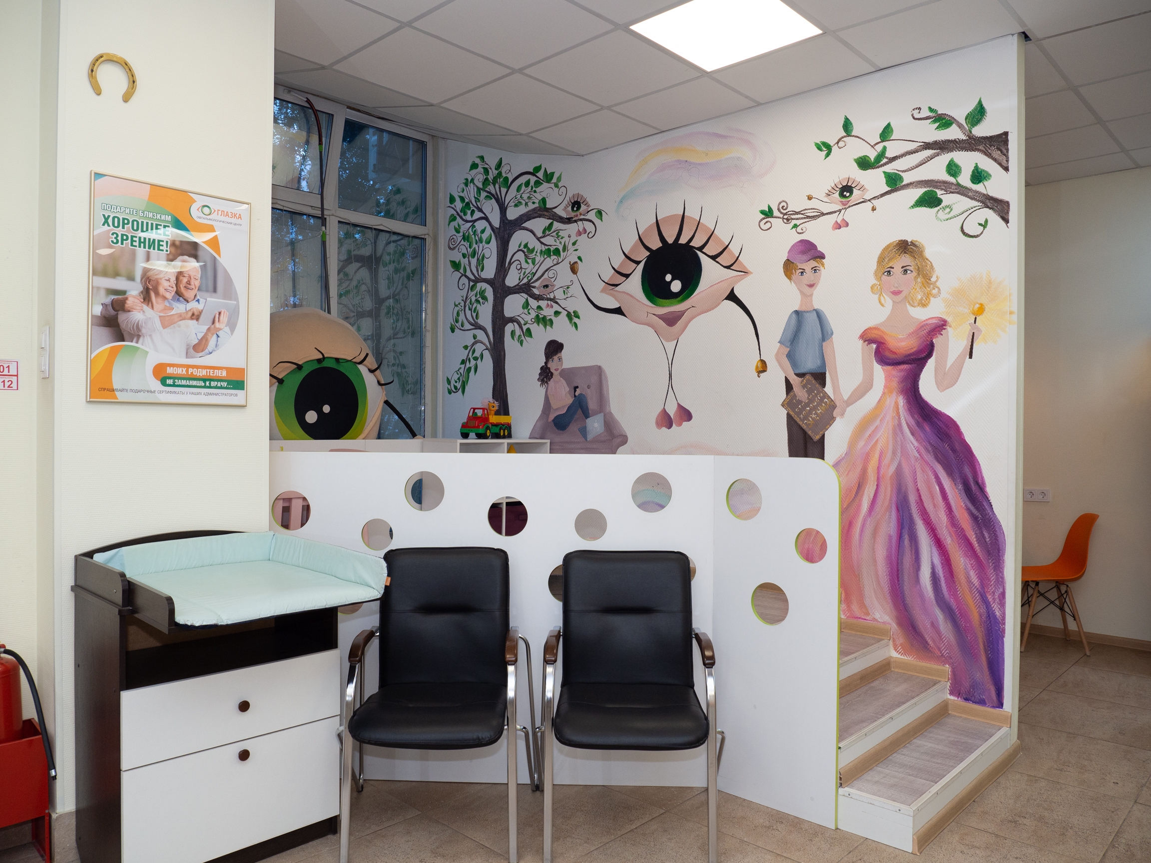 Офтальмологические центры «Глазка» – это 25 врачей-офтальмологов без совместительства, 12 диагностических кабинетов, 2 лечебных кабинета для детей, процедурные кабинеты для взрослых, собственные салоны оптики.