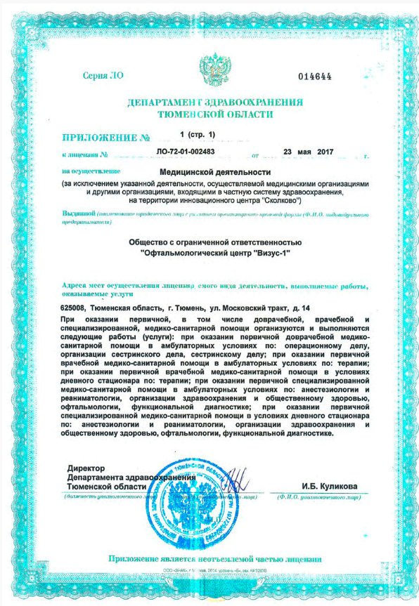 Выполняет ультразвуковое удаление хрусталика по поводу катаракты, хирургию прозрачного хрусталика по поводу близорукости, дальнозоркости, астигматизма. Проводит гипотензивную хирургию хрусталика поводу глаукомы, вмешательства на единственных глазах (monoculus), комбинированную хирургию катаракты и глаукомы и т.д.