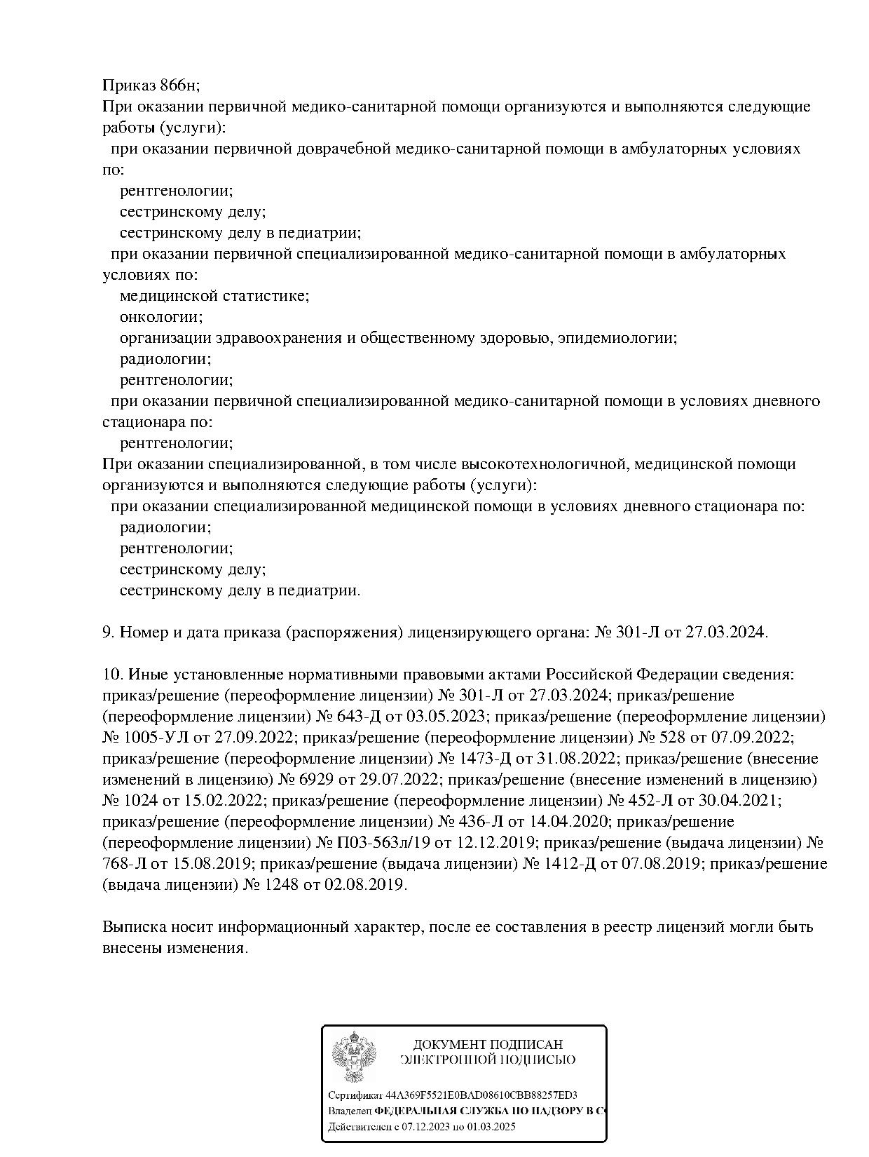 Осуществляет консультативный и диагностический прием взрослых и детей. В клинике работают специалисты по направлениям: аллергология, иммунология, дерматология, гастроэнтерология, гинекология, терапия, кардиология, неврология, онкология, ортопедия, стоматология, травматология, остеопатия и др. Оказываются диагностические услуги: рентгенография, компьютерная томография, гастроскопия, ЭКГ, УЗИ, цистоскопия, оториноскопия, гастроскопия. А так же имеются палаты дневного стационара. Прием проводится по предварительной записи.