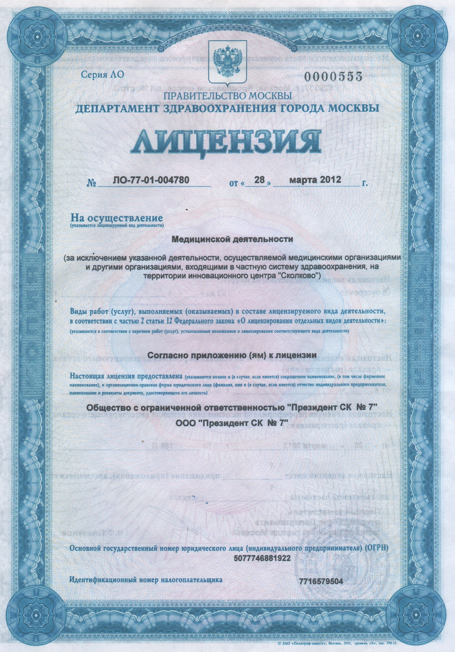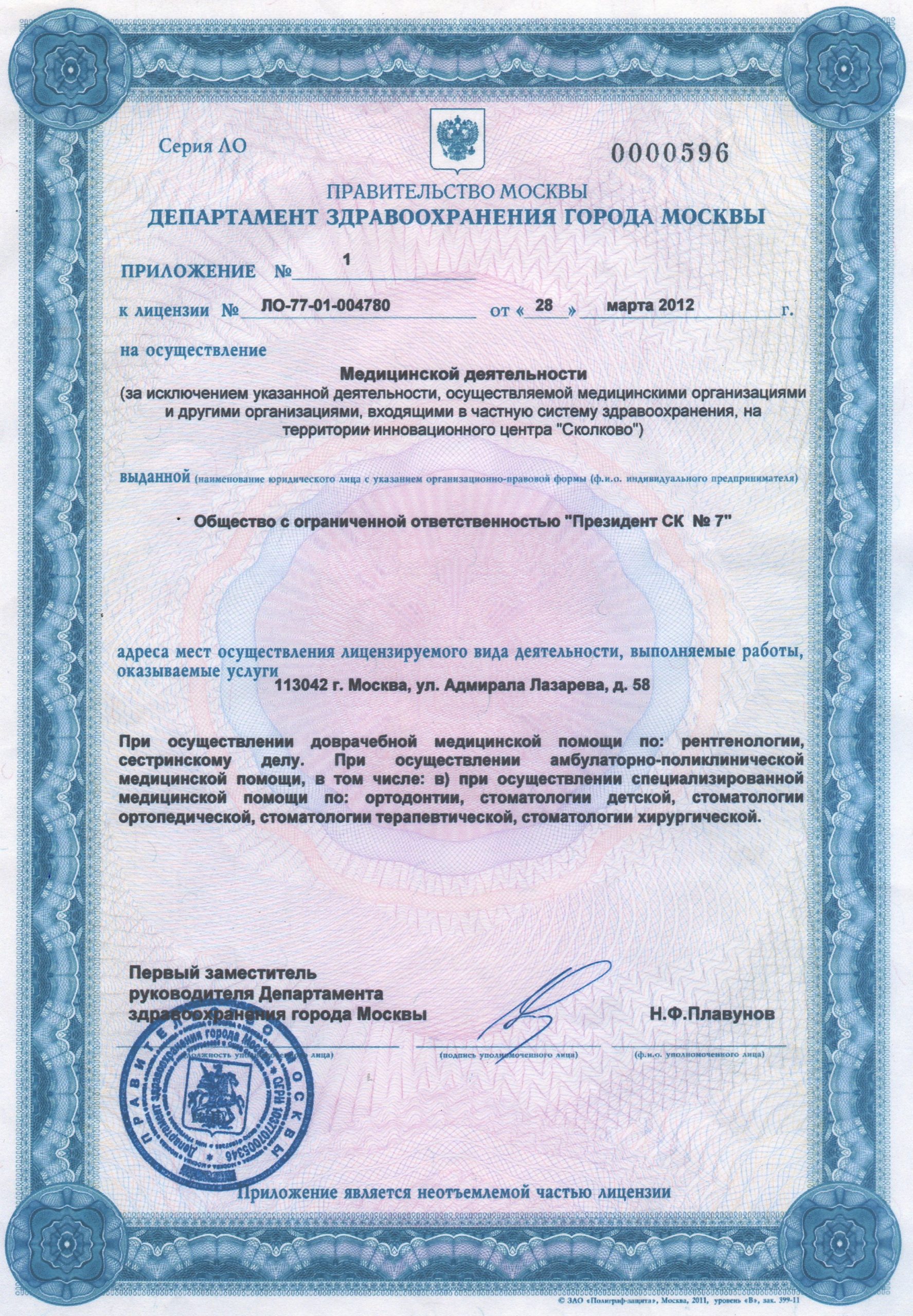 Стоимость приема - 0 Руб