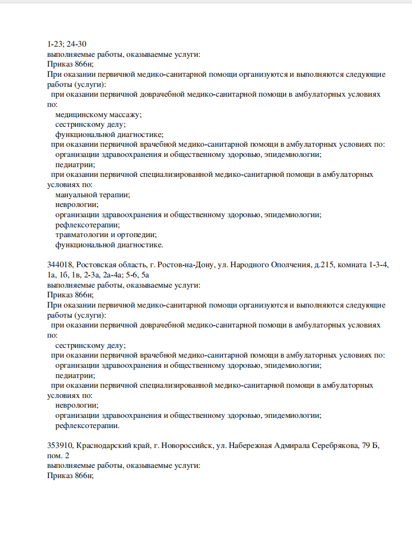 Специализации клиники