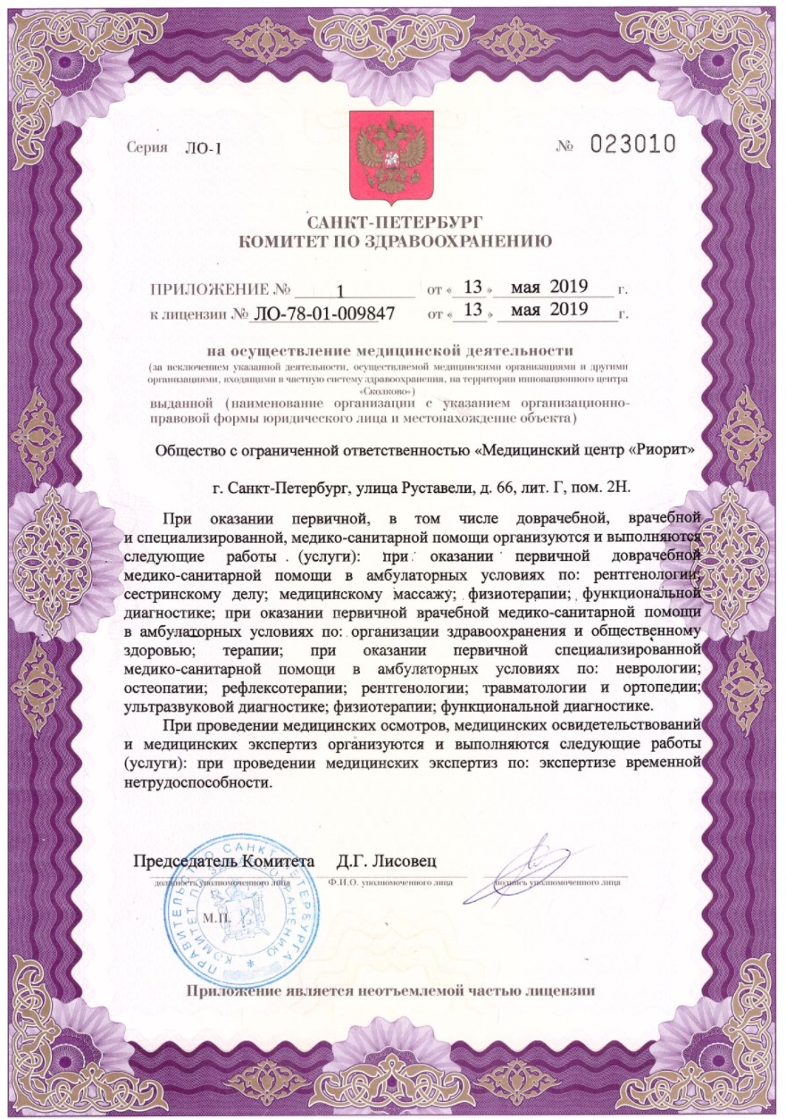 МРТ центр и клиника Риорит. В центре можно сделать МРТ: головного мозга, сосудов головного мозга, суставов, отделов позвоночника и т.д. Исследования проводятся на МРТ аппарате экспертного класса Siemens Magnetom C открытого типа производство Германии. Ы клинике ведут прием врачи неврологи, рефлексотерапевты, ортопеды-травматологи, вертебрологи, врачи спортивной медицины, мануальные терапевты. Прием осуществляется по предварительной записи.