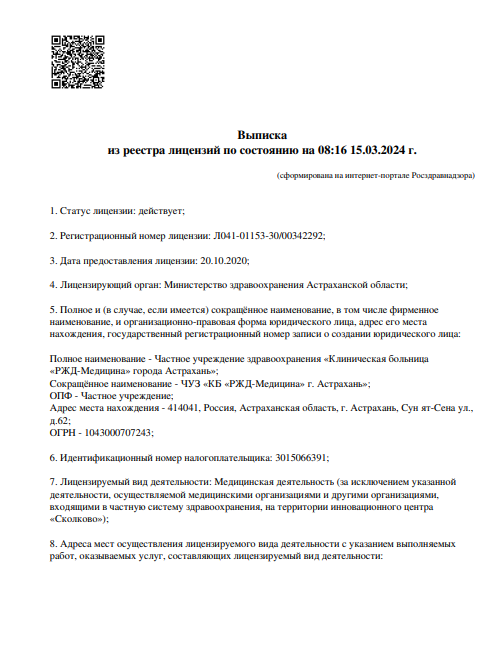 Стоимость приема - Руб