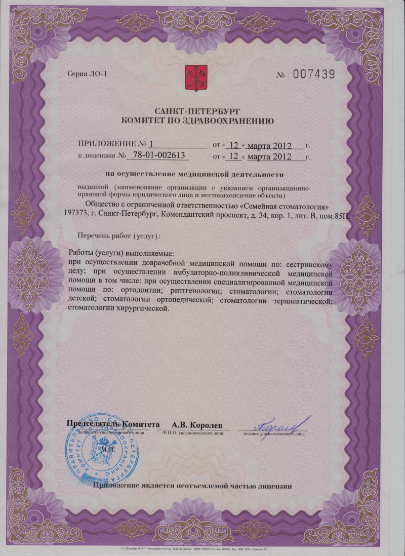 Клиника Семейная стоматология предоставляет полный спектр стоматологических услуг, в том числе диагностику. Лечение направлено на максимальное сохранение живых зубов пациентов. В филиале лечат кариес, пульпит, периодонтит, делают имплантацию зубов, коррекцию прикуса брекетами и каппами, косметическую реставрацию зубов, восстанавливают разрушенные зубы на штифтах. Врачи обладают существенным опытом работы, сертификатами и лицензиями международного класса. Клиника оснащена современным оборудованием: микроскопом, томографом, аппаратом Vector и др.