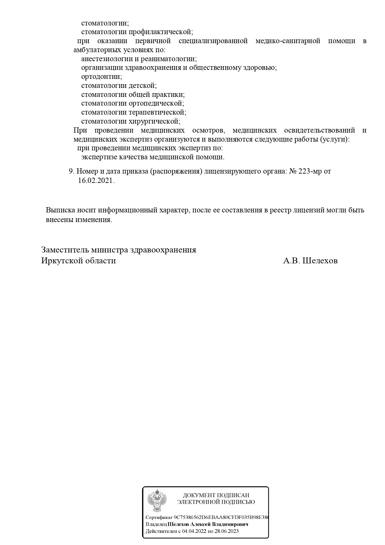 Специализации клиники