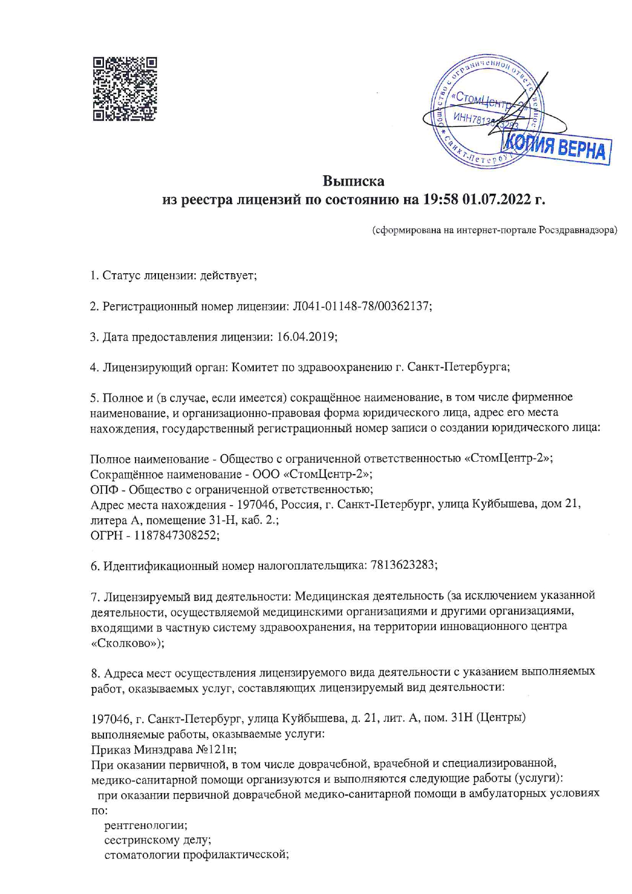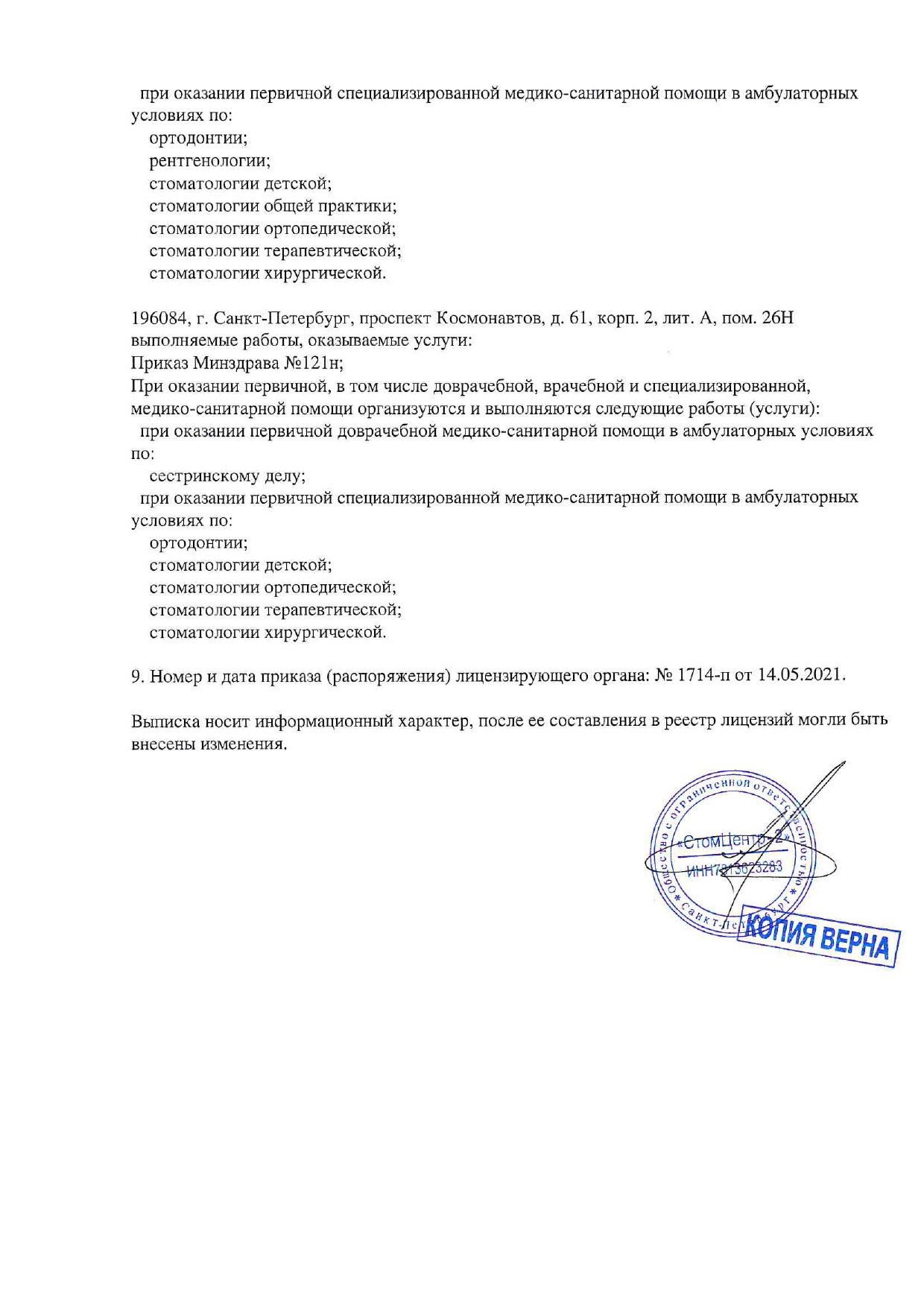 Стоматологическая клиника предоставляет услуги по стоматологии, включая терапию, ортопедию, ортодонтию, хирургию, имплантацию. Прием проводится по предварительной записи.
