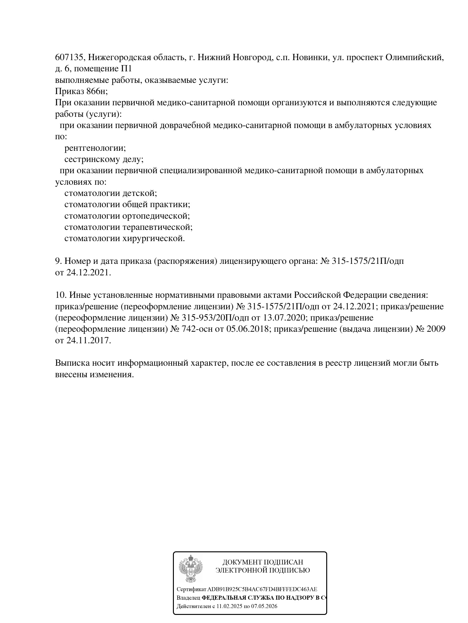 Специализации клиники